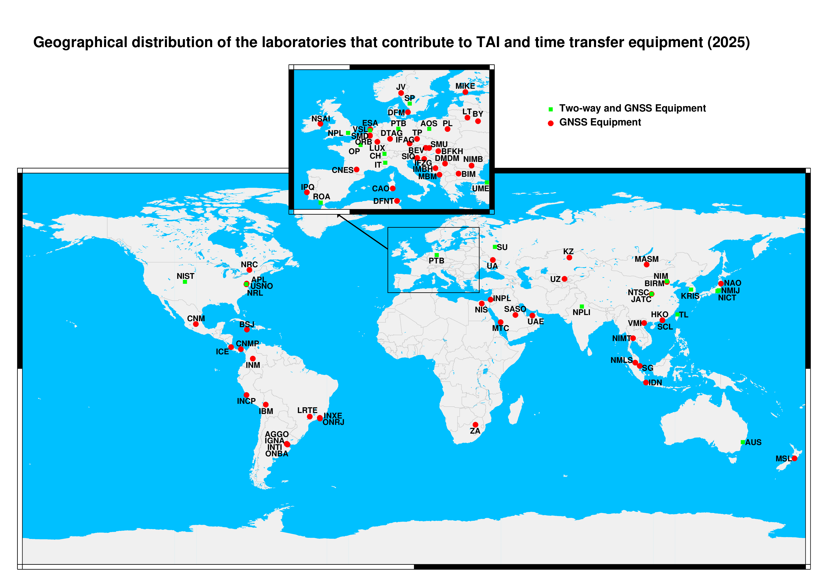 Geographical map of laboratories contributing to TAI